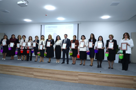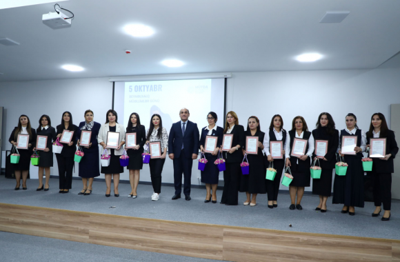 Tədbirdə Elm və Təhsil Nazirliyi yanında Məktəbəqədər və Ümumi Təhsil üzrə Dövlət Agentliyinin (MÜTDA) direktor müavini, BŞTİ-nin müdiri vəzifəsini müvəqqəti icra edən Nərminə Hüseynova təhsilin inkişafındakı xidmətlərinə, gənc nəslin təlim-tərbiyəsi sahəsində yüksək nailiyyətlər əldə etdiklərinə görə Elm və Təhsil Nazirliyi tərəfindən 16 təhsil işçisinin “Azərbaycan Respublikası qabaqcıl təhsil işçisi” döş nişanı, 30 təhsil işçisinin “Azərbaycan Respublikası Elm və Təhsil Nazirliyinin Fəxri Fərmanı” və 92 təhsil işçisinin BŞTİ-nin Təşəkkürnaməsi ilə təltif olunduğunu qeyd edib.
