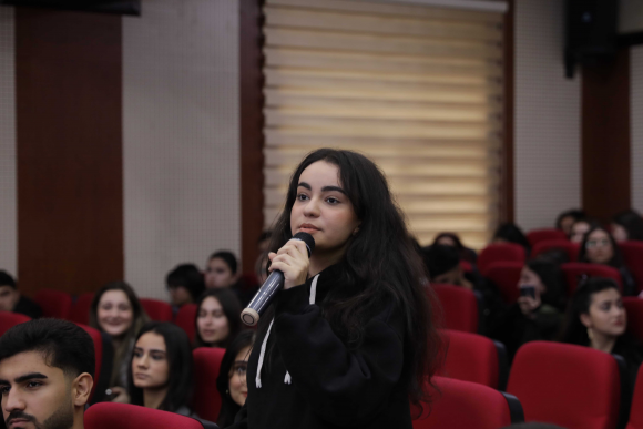 Sonda qonaq tələbə və əməkdaşların suallarını cavablandırıb.