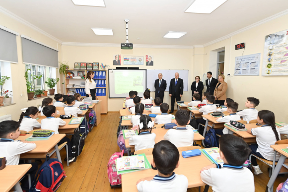 Sinif otaqlarına baxış zamanı nazir STEAM və “Rəqəmsal bacarıqlar” layihələrinin tədris prosesi ilə yaxından maraqlanıb, dərslərin təşkilini izləyib və şagirdlərlə fikir mübadiləsi aparıb. Şagirdlərin təqdim etdikləri layihə və praktiki işlərlə tanış olan nazir sözügedən layihələrin əhatə dairəsinin genişləndirilməsinin vacibliyini vurğulayıb.