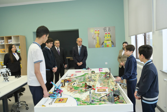 Daha sonra məktəbin STEAM mərkəzinə baxış keçirilib. Nazir şagirdlərin hazırladıqları layihələrlə tanış olub, onların innovativ ideyalarını dinləyib və bu istiqamətdə əldə etdikləri nailiyyətləri yüksək dəyərləndirib.