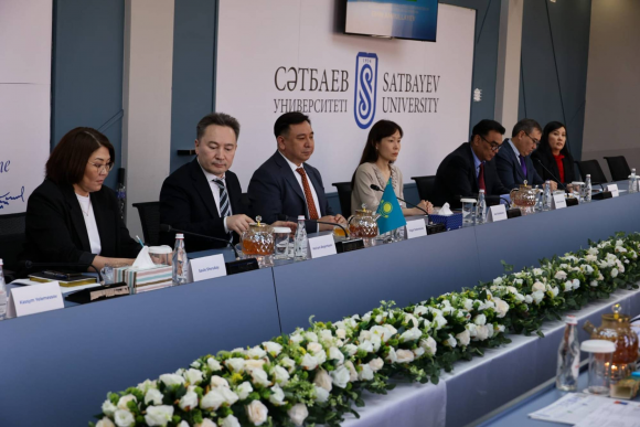Görüşdə Qazaxıstan Respublikasının elm və ali təhsil nazirinin müavini Talqat Yeşenkulov, universitetin rektoru Meyram Beqentayev və Bakı Dövlət Universitetinin rektoru Elçin Babayev iştirak edib.