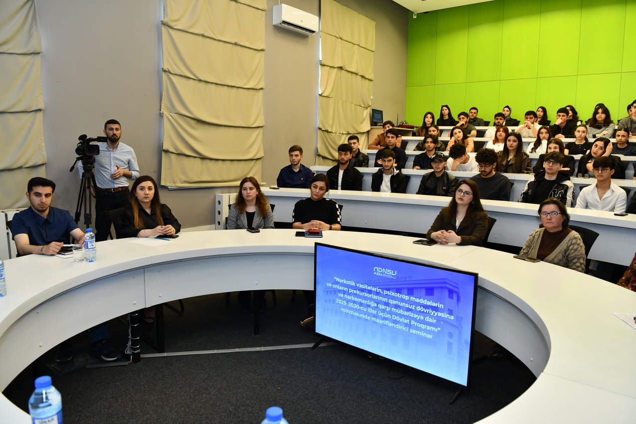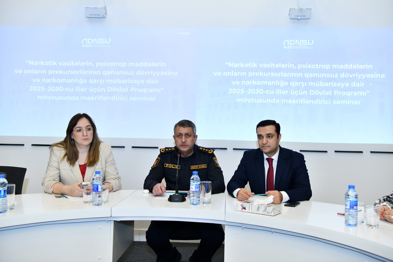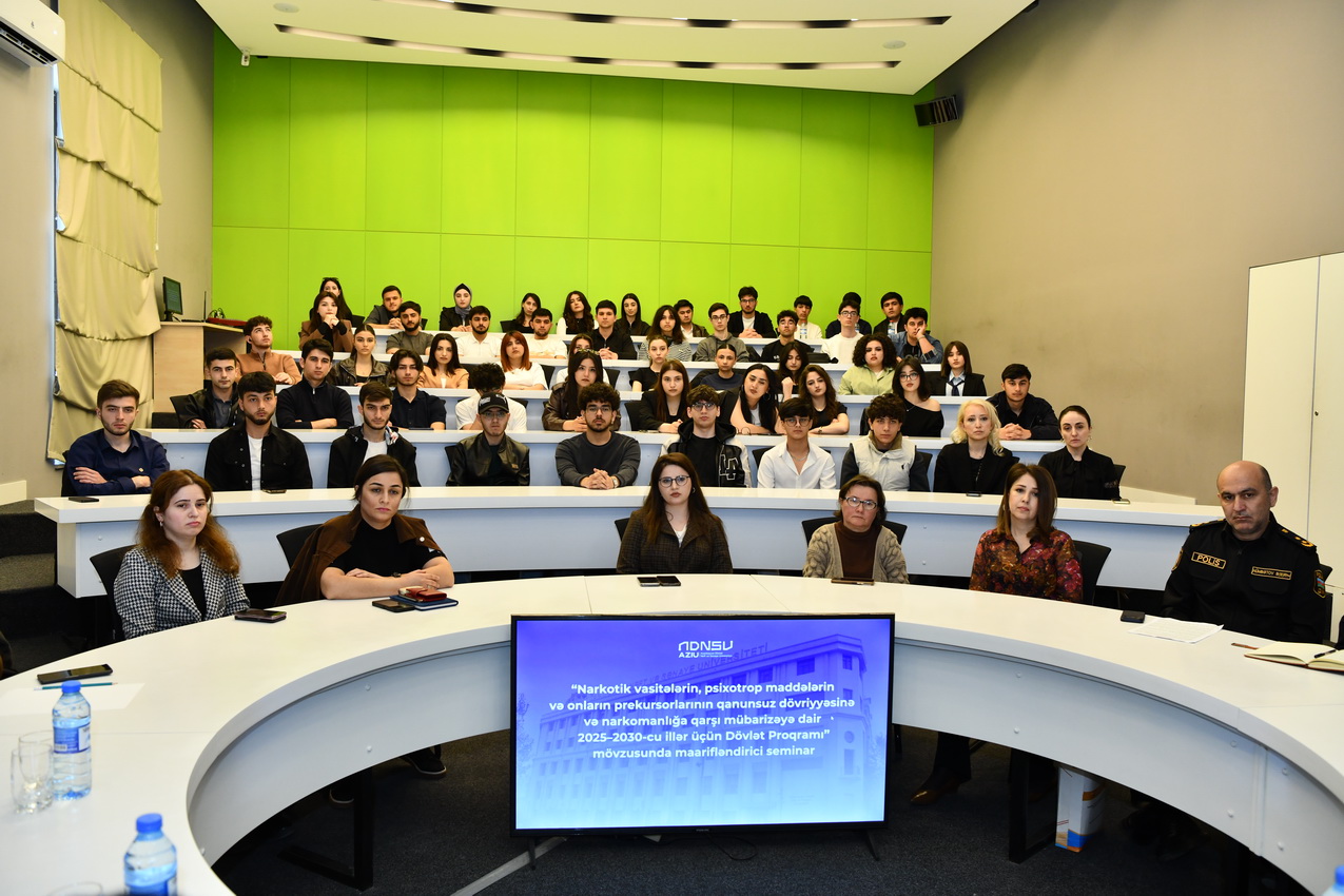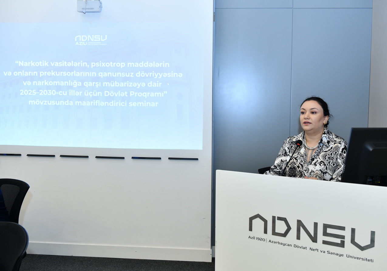 Aprelin 16-da Azərbaycan Dövlət Neft və Sənaye Universitetində (ADNSU) Nəsimi Rayon Polis İdarəsi ilə birgə “Narkotik vasitələrin, psixotrop maddələrin və onların prekursorlarının qanunsuz dövriyyəsinə və narkomanlığa qarşı mübarizəyə dair 2025–2030-cu illər üçün Dövlət Proqramı” çərçivəsində maarifləndirici seminar təşkil olunub.