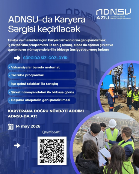 Azərbaycan Dövlət Neft və Sənaye Universitetində (ADNSU) 14 may tarixində karyera sərgisi keçiriləcək.
