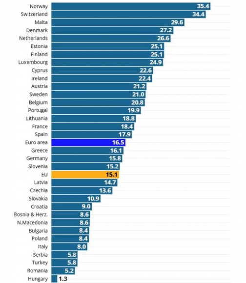 Avstriyada bu göstərici 21.2%-dir. Şəxsi istifadə isə 39.42%-dir.