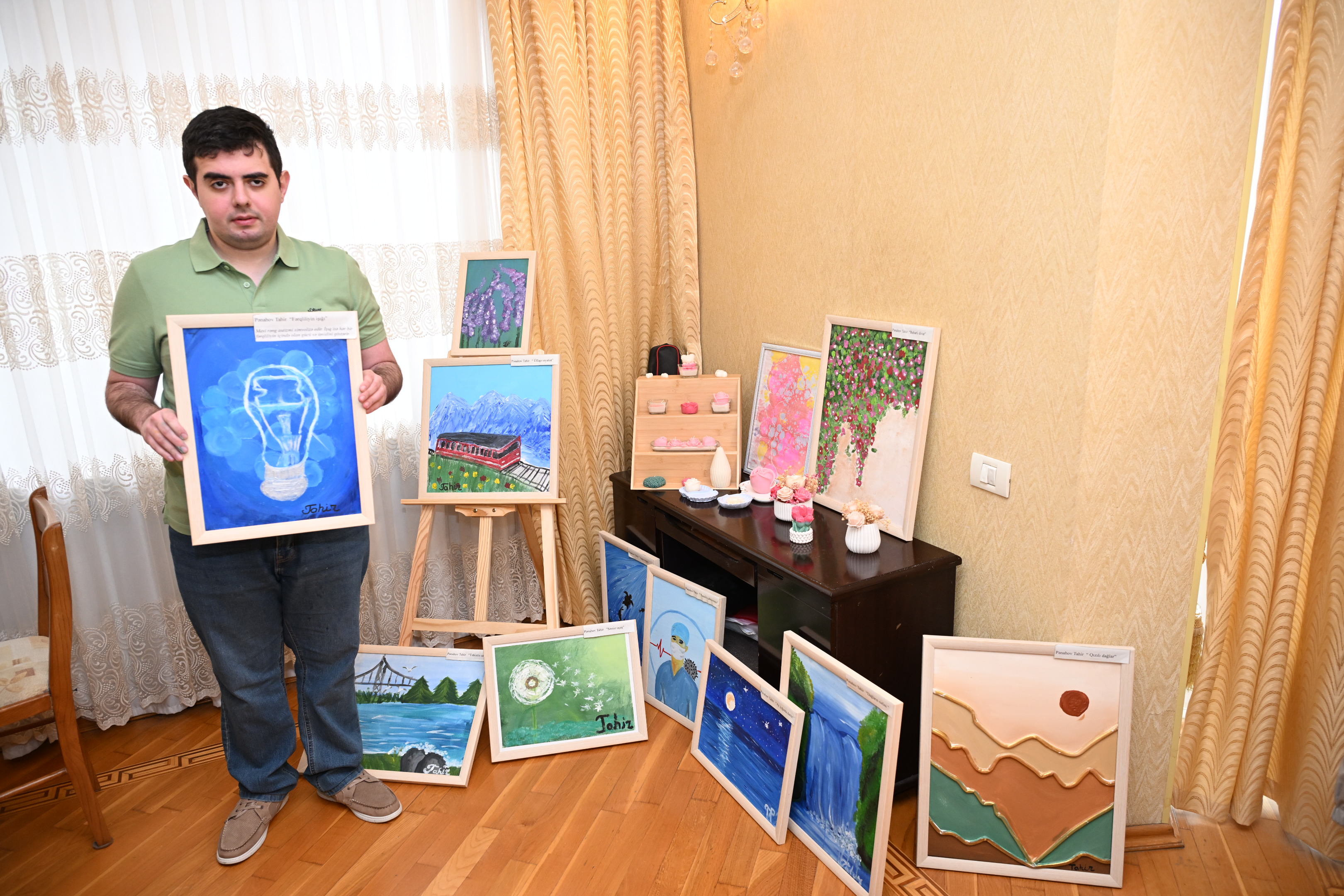AZƏRTAC-ın əməkdaşları olaraq Tahirin ailəsində qonaq olduq. O, bizə handpan musiqi alətində ifa etməsini, rəsm çəkməsini, eyni zamanda, riyazi və astroloji biliklərini nümayiş etdirdi. Tahirin ən diqqətçəkən bacarıqlarından biri onun təqvim yaddaşıdır. O, hər hansı bir tarixin həftənin neçənci günü olduğunu dəqiq deyir. Həmçinin müxtəlif illərin hansı heyvanların adı ilə bağlı olduğunu asanlıqla söyləyir. Tahir tanınmışların doğum tarixlərini də yaddaşına həkk edib.