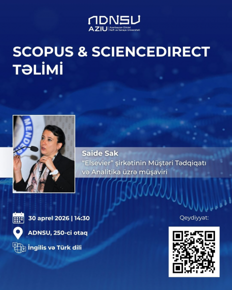 ADNSU-da “Elsevier” şirkətinin eksperti Saide Sak tərəfindən Scopus və ScienceDirect platformalarına həsr olunmuş təlim keçiriləcək